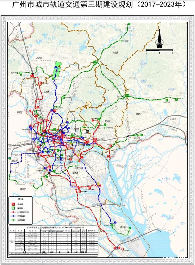 2017年3月,国家发改委批复了广州市城市轨道交通第三期建设规划(2017-2023年)(发改基础[2017]498号),原则同意建设3号线东延段、5号线东延段、7号线二期、8号线北延段、10号线、12号线、13号线二期、14号线二期、18号线和22号线等10个项目,总长度258.1公里。