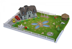 比例1:150,主体材料ABS树脂,底板尺寸为300x210mm,以欧洲法式建筑为蓝本进行设计的欧式别墅园林模型。含法式别墅