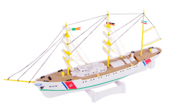 比例1/480,船长325mm、宽45mm,根据俄制现代级驱逐舰136“杭州”号为蓝本设计的比例电动航海模型,装备导弹发射