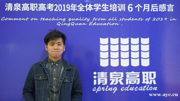 当初,刚到清泉高职高考冲刺班特别的懵懂,连主、谓、宾都搞不懂,连基础的英语、数学题都做不出来,三年的时间,我落下来太多的知识,我告诉自己:“你若想上大学,走一条更好路,必须把握现在,主宰自己命运!每个人心中都有一个梦想但是实现梦想的道路是曲折的。无数人在实现梦想的过程中遭遇了无数的挫折而在这途中,必定是艰难困苦的,熬过了梦想能实现,就像绿芽在土中 努力了一冬之后,积蓄了全身的力量,终于把破土而出的梦想变成现实;”就像县花在沉默良久之后,倾尽毕业的精华,终于把璀璨绽放的梦想变成现实。