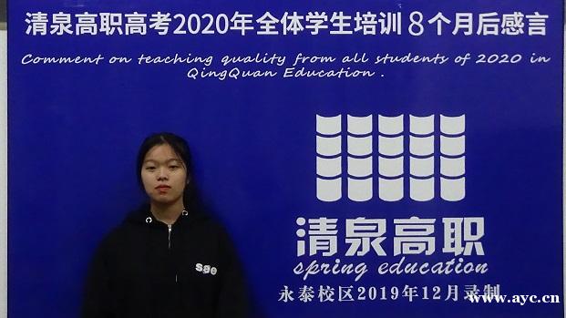 不知不觉已经在清泉高职高考冲刺班学习了四个半月。时间过得飞快,从一开始的陌生到如今的熟悉,我们都有所改变。我们不仅学习到书本所学的知识,还学到了更多平时学不到的东西。这里的同学们都积极上进,有着良好的学习氛围,老师们也尽心尽力的对待学生。上课生动有趣教学方法通俗易懂。是我喜欢的。