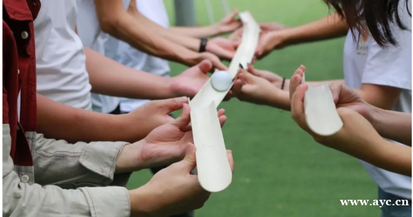 项目内容:所有家长小朋友一字排开,每人手持接力棒(半块PUC管),在保证圆珠(高尔夫球等)不掉落的情况下从教练的位置运送到达终点,且过程中不能犯规。