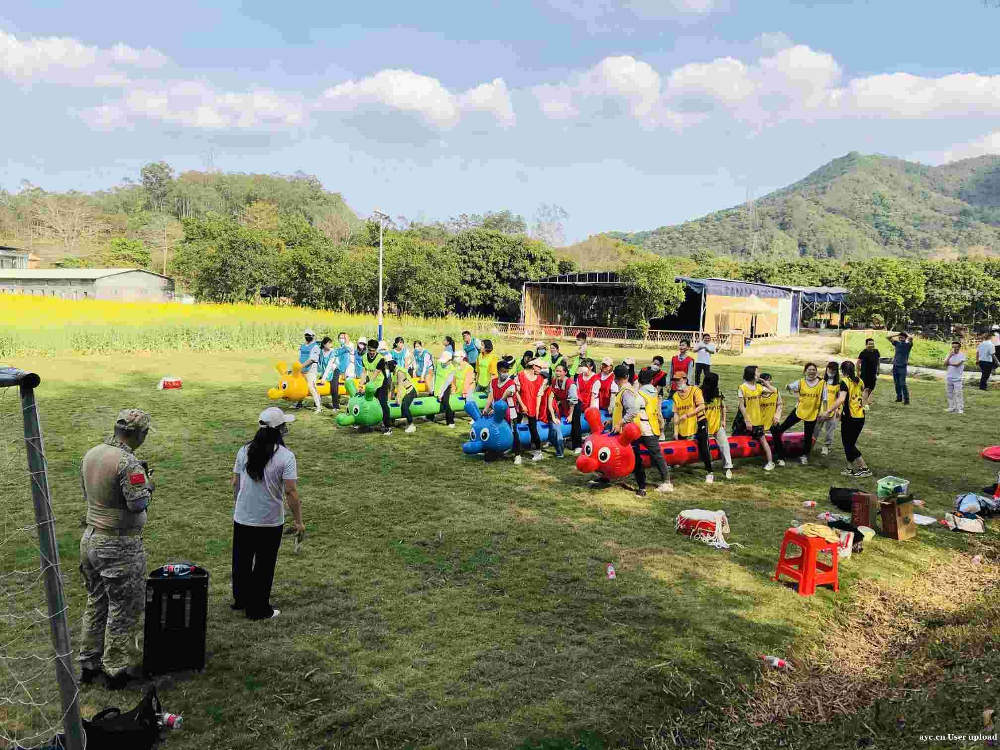“饭后小憩,活似神仙”躺在农场静养区的吊床里感受如风般自由!短暂的午休过后,农场会为30人以上的团队安排团建拓展活动,教练慷慨激昂的讲解着比赛的规则,项目包含:九人十足、击鼓颠球、挑战160秒、毛毛虫等活动,大家也颇为认真的参与其中,感受团队在一起的凝聚力,无论多大的困苦只要大家“共患难、共面对、共克服”一切都会迎刃而解!