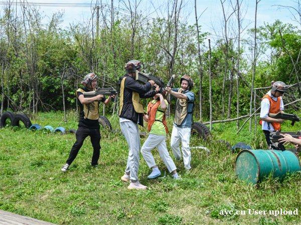 这个活动需要大家站在木板手拉着绳子才能进行,一二三四五跟着节凑大步迈前,大家要走完规定的路线,输的小组就要接受惩罚,这是一个十分有趣的项目。