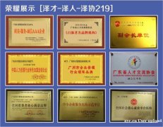 获得荣誉:质量-服务-诚信AAA企业、广东省著名品牌企业、人力资源行业连锁企业