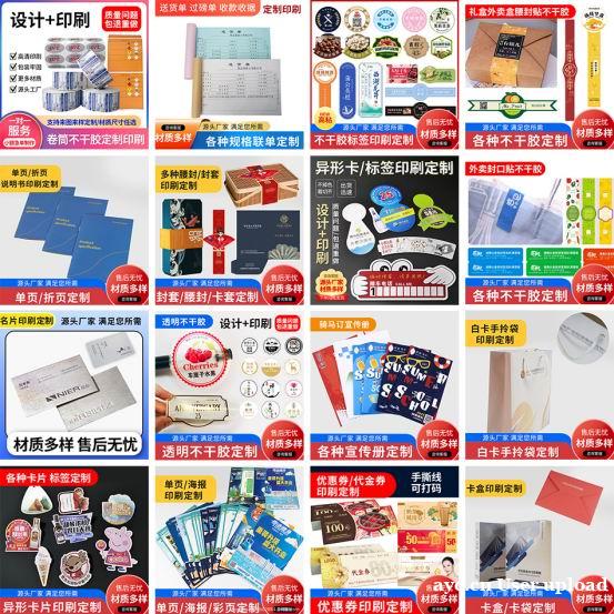 产品介绍:腰封、白卡盒、异形卡、不干胶标签、贴纸、卷筒标签,宣传单、彩页、海报、画册、手拎袋、名片、卡头、吊牌、说明书、联单表单、笔记本、记录本等