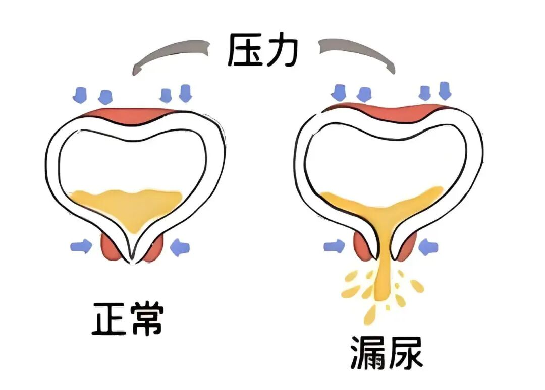 漏尿现象:压力性尿失禁在咳嗽、打喷嚏时更明显,甚至发展为急迫性尿失禁。