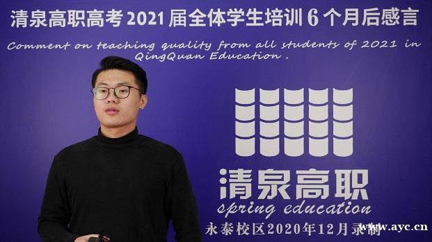 在清泉高职高考冲刺班的这几个月中,我改善了我的学习方法,从这几个月中,使我更加坚定地追寻我的目标。我坚信拔开云雾见天目,守得云开见月明。感谢清泉的各位老师,也感谢一直在坚持走在道路上的自己。