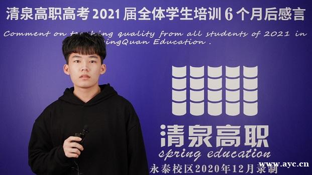 刚到清泉高职高考冲刺班的时候我可以说我从思想上挺迷茫的,我个人觉得思想挺重要的,它其实也在成长,只不过有些幼稚的区分,从这短短五个多月的时间,得到的却比在学校两年得到的多,甚至可以说在学校得到的是在为现在的成长做铺垫。