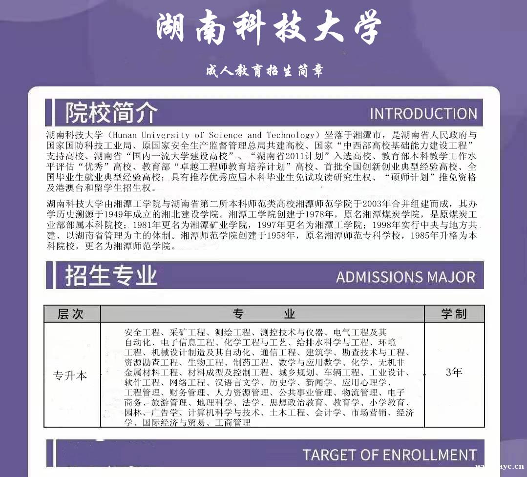 湖南科技大学成人高等教育本科招生简章