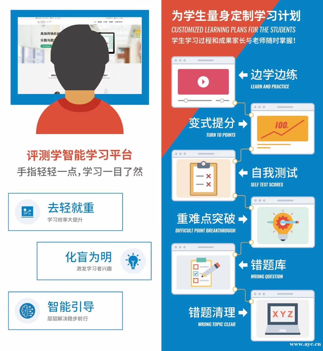 评测学智能教育品牌创立于2015年8月,专注于中小学教育,携十余年国外自适应教育产品研发经验,打造国际领先和完整自主知识产权人工智能自适应学习引擎。