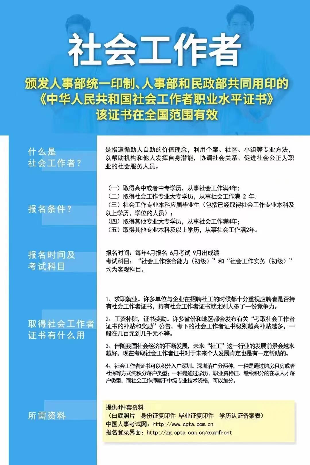 考试科目: 社会工作综合能力、社会工作实务。(均为客观题)