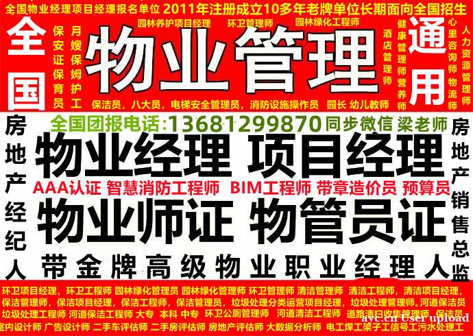 物业经理上岗证,全国物业从业人员上岗证也叫全国物业管理企业经理报名咨询梁老师。