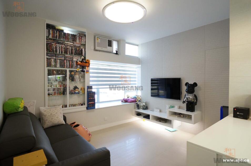 家是忘憂空間,甫開白色大門便進入純潔寧靜的境界,外界煩囂一掃而空。素淨而簡樸,同時帶來反璞歸真之感,這就是純白的魅力,也足以令屋主鍾情於「白」。屯門市廣場的全新2房1廳單位,實用面積為351平方呎。和生將單位打通為1房1廳,設計意念照顧到2位屋主所好,也配合了家中另一小主人--喵星人的需要。裝修於2017年10月完工,總工程費約41萬。